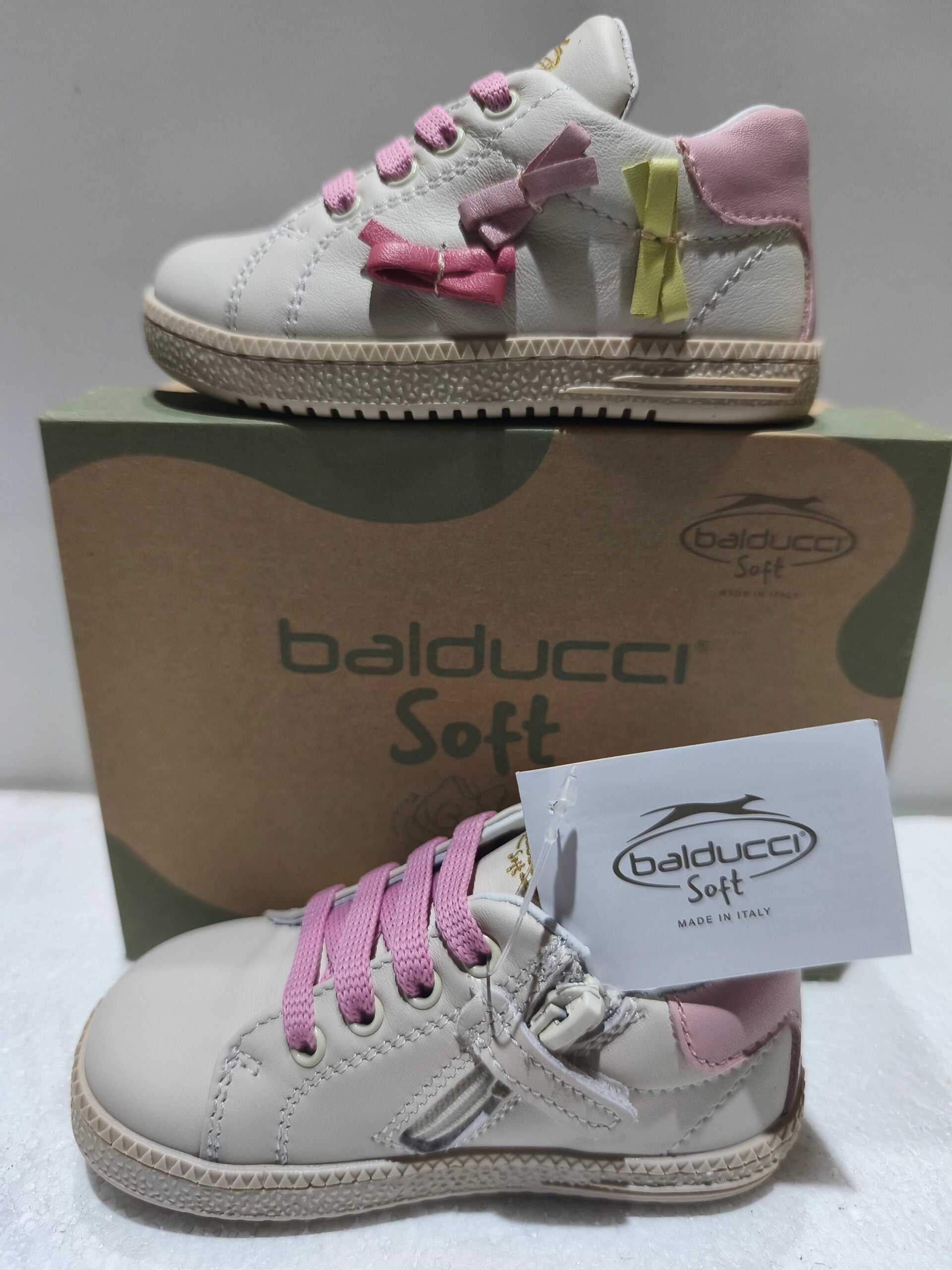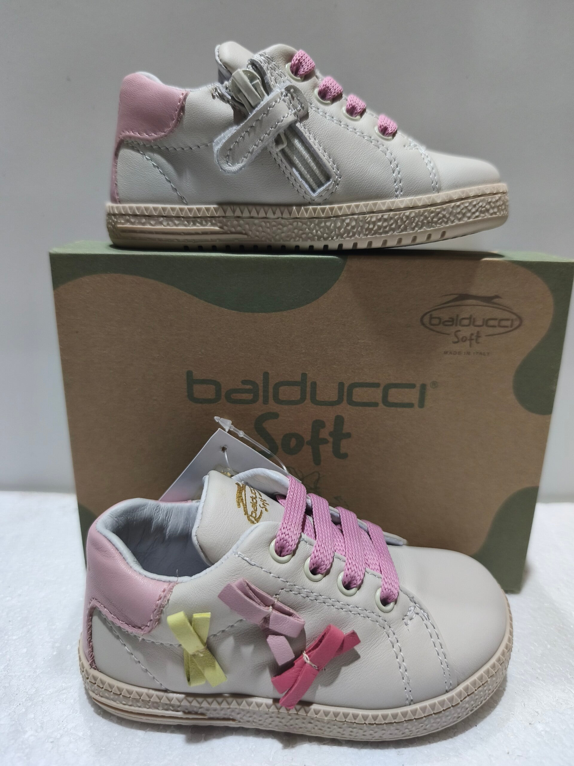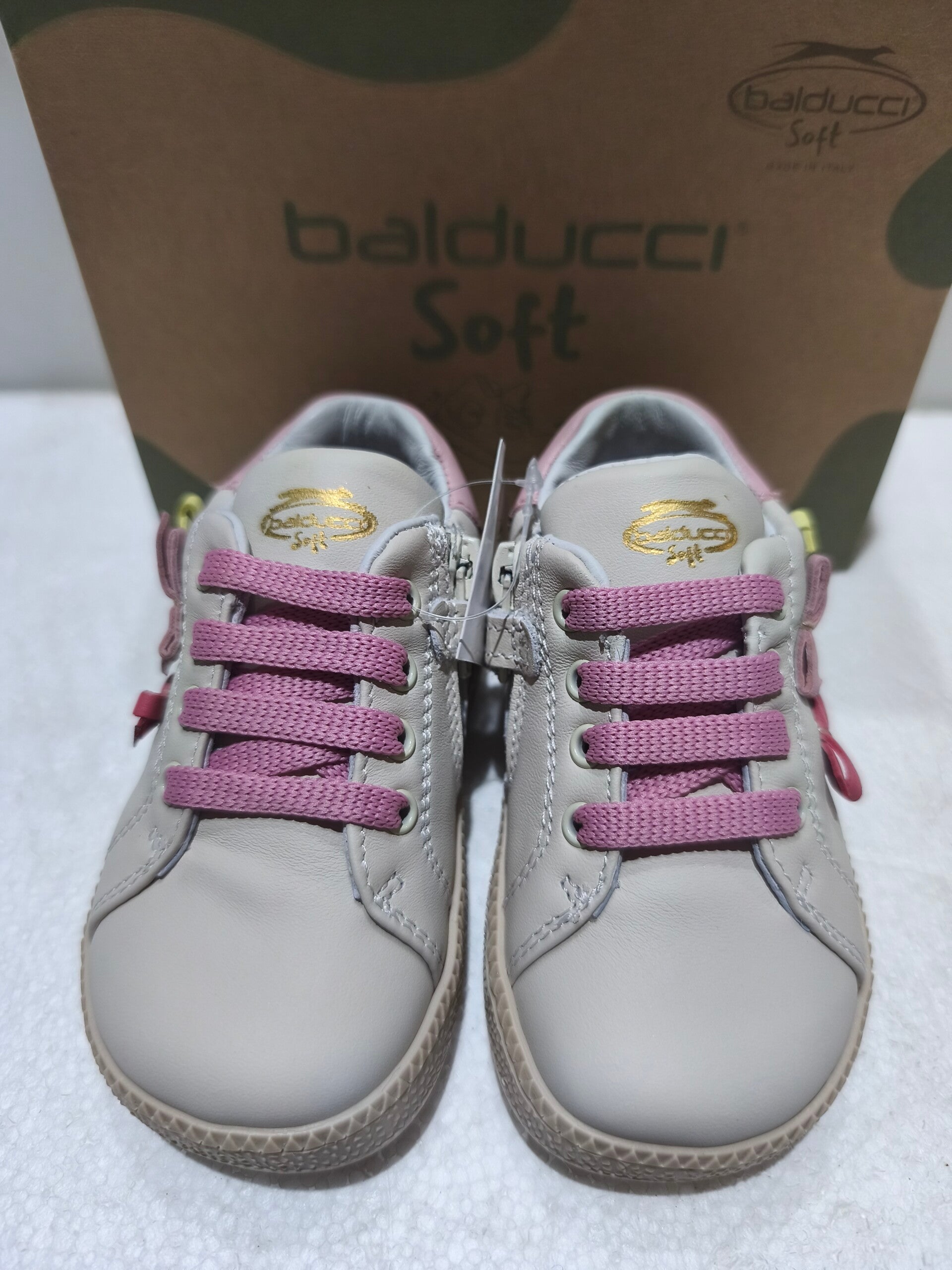 Accompagna i momenti più importanti della crescita con la linea Balducci Soft, pensata specificamente per offrire massima flessibilità e supporto durante i primi passi. Queste sneaker combinano un'estetica dolcissima, arricchita da dettagli colorati, con la storica qualità artigianale del marchio Made in Italy.