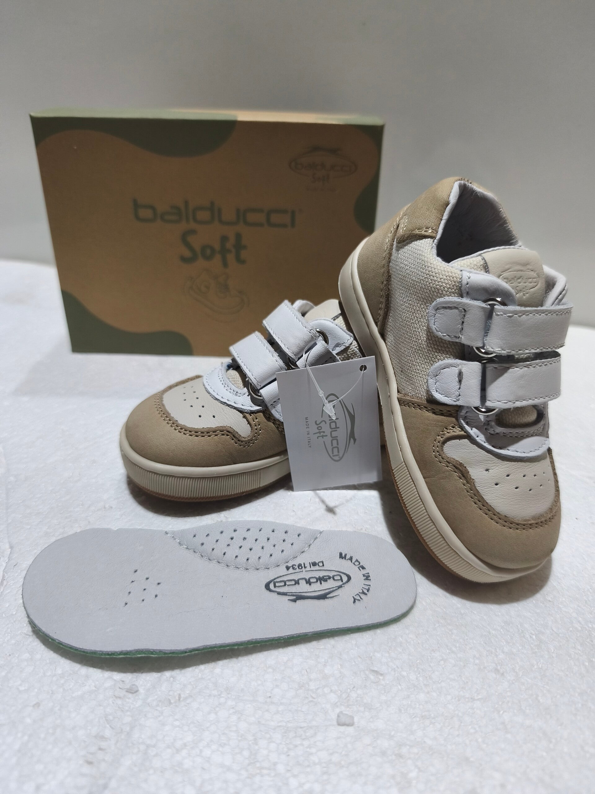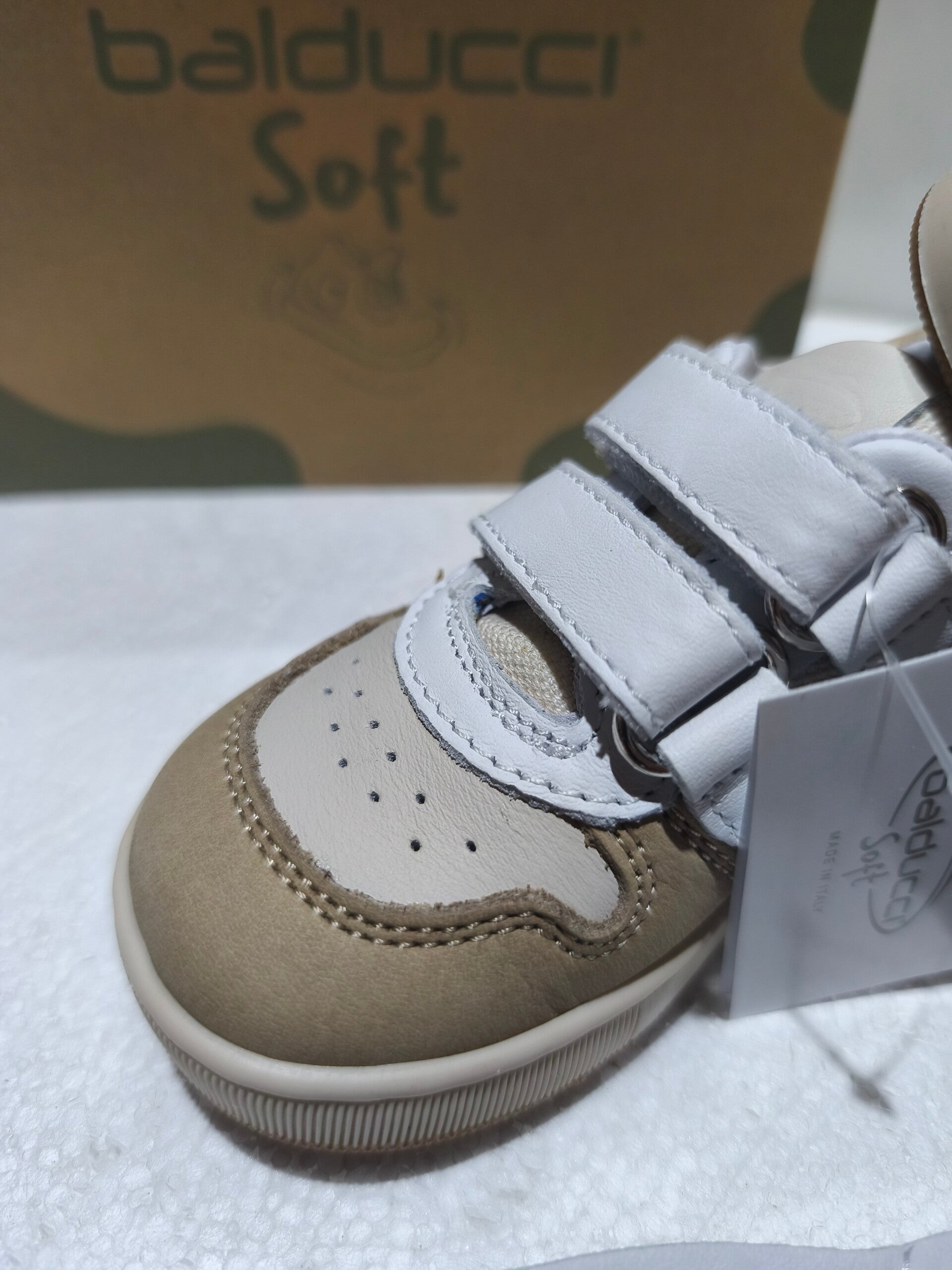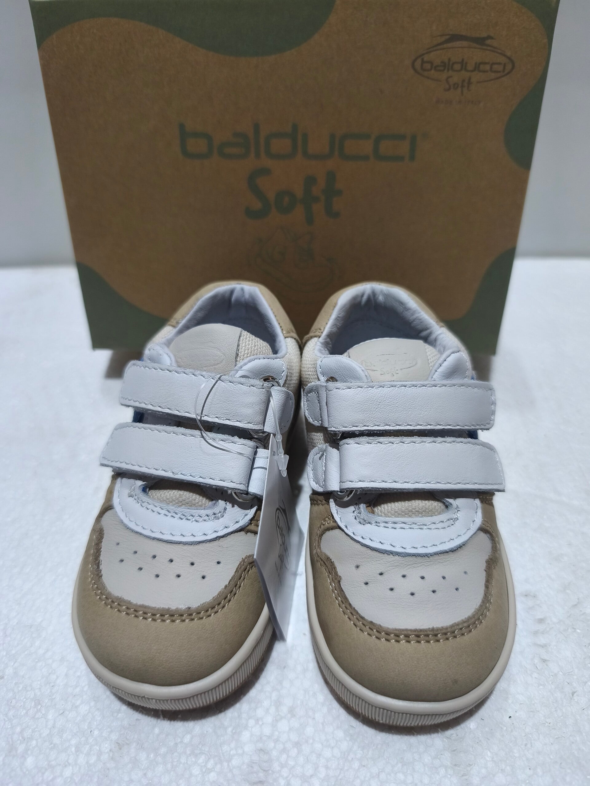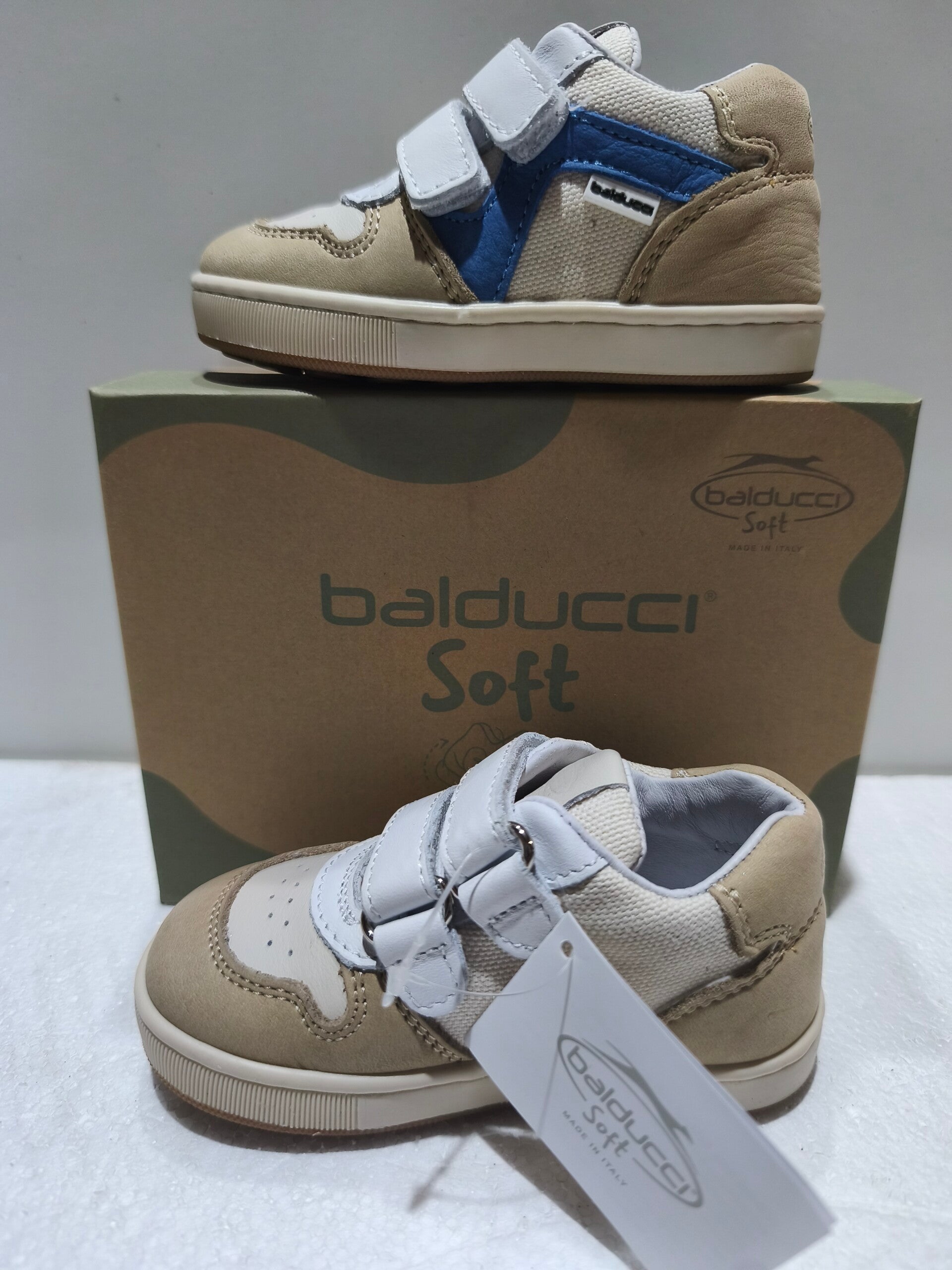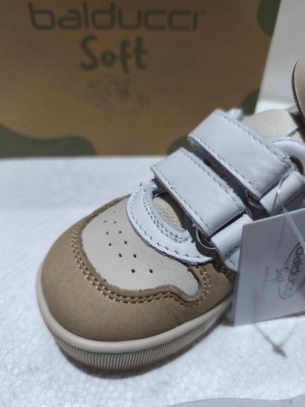 Le sneaker della linea Balducci Soft sono progettate per unire estetica urbana e funzionalità tecnica. Questo modello si distingue per un raffinato mix di texture e colori naturali, ideale per accompagnare i più piccoli nelle loro prime avventure quotidiane con la sicurezza di una scarpa Made in Italy.