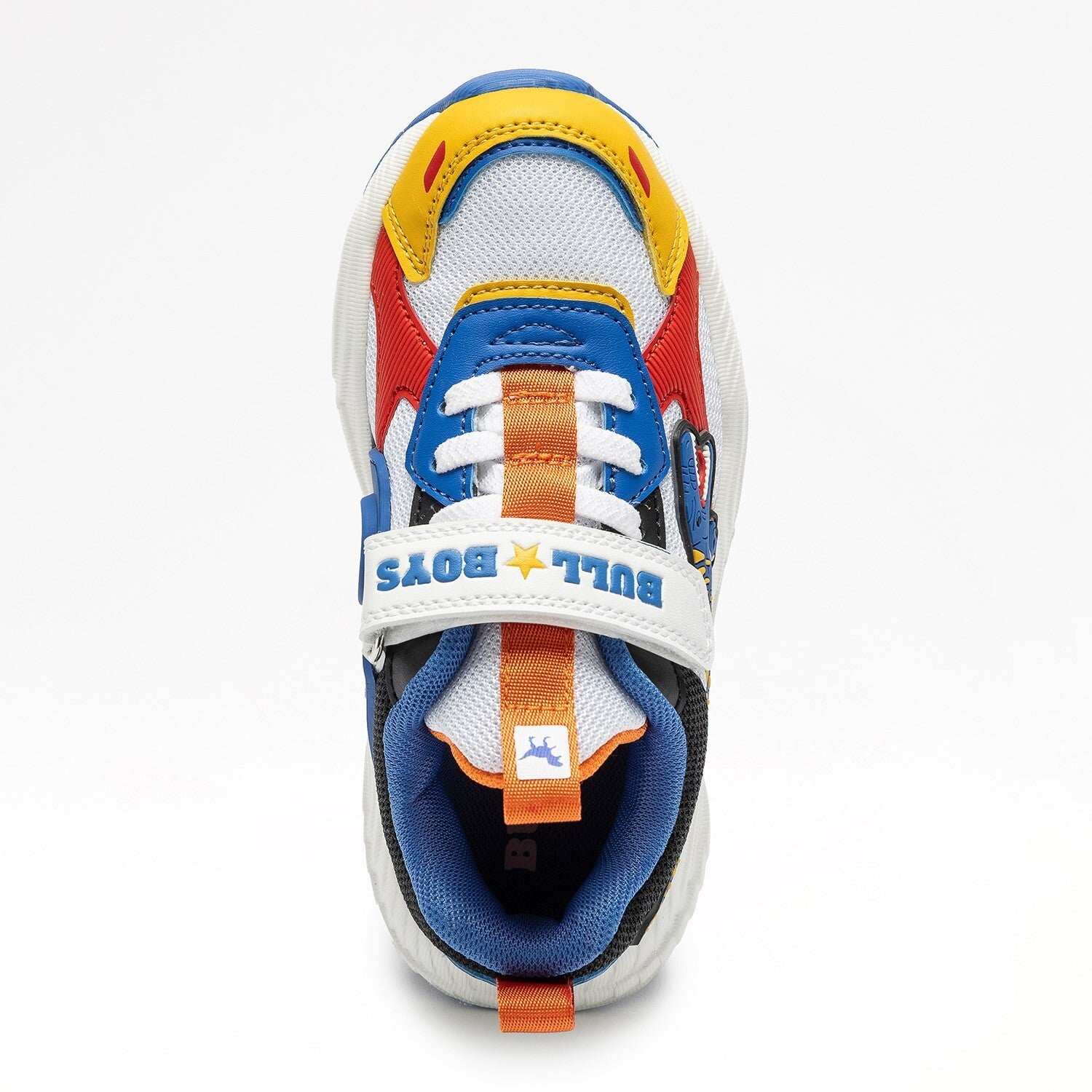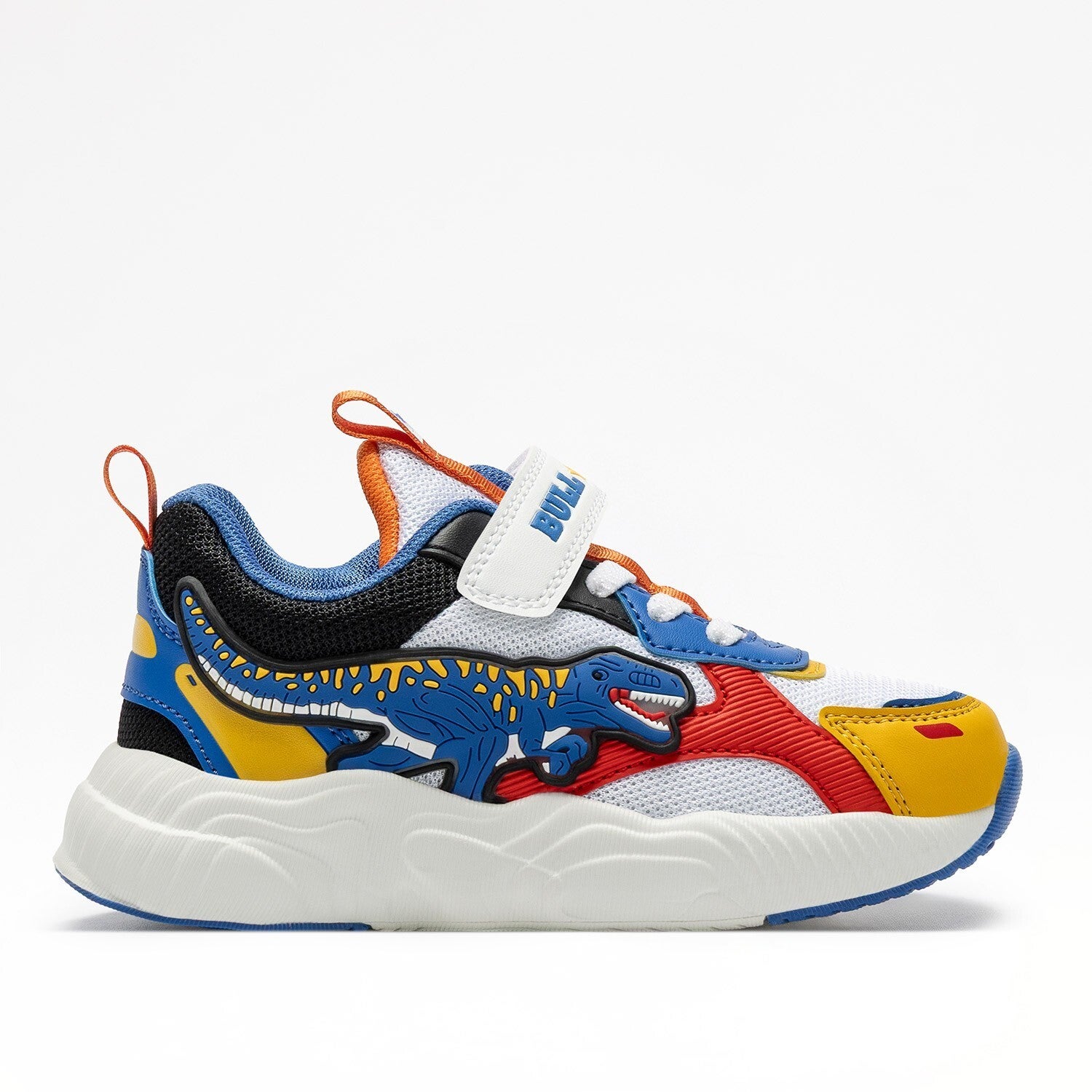 Scatena la voglia di esplorare con le nuove sneakers Bull Boys, le scarpe che trasformano ogni passo in un’avventura preistorica! Caratterizzate da un design dinamico e multicolore (blu, rosso, giallo e arancione), queste scarpe presentano un incredibile dinosauro T-Rex in rilievo sul lato, pronto a ruggire a ogni corsa.
