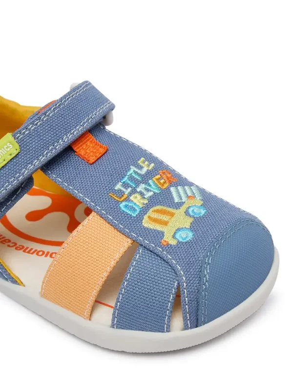 Fai vivere al tuo bambino un'estate all'insegna del comfort e del divertimento con i sandali Biomecanics. Questo modello "ragnetto", caratterizzato dal simpatico ricamo "Little Driver", combina la massima traspirabilità di un sandalo aperto con la protezione e il supporto tipici di una scarpa primi passi.